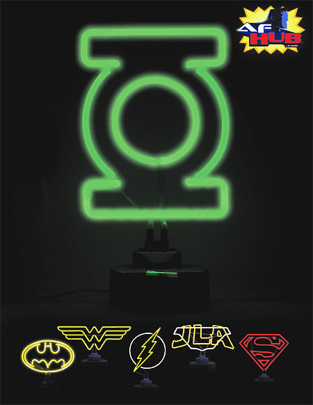 Decorate your home or store with this exciting, affordable neon sign featuring Green Lantern’s classic logo! The adjustable base unit can sit on a tabletop or be mounted to a wall. Powered by a plug-in, UL-adapter, the sign itself measures approximately 7″ wide x 9″ high and has a base measuring approximately 5.5″ in diameter. Packaged in a 4-color box. Advance-solicited; on sale August 12, 2009 * Neon Sign * $89.99 US Note: These signs are available with several different power adapter options, including U.S., U.K., E.U. and AUS. When ordering, please select the appropriate line and item code on the order form, as each version has been assigned its own code.