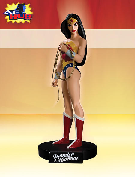 Seductive sorceress Zatanna Zatara casts a spell on the DC Universe as she becomes the second Adam Hughes Cover Girl to appear as a stunning statue. With a pose taken directly from the cover of CATWOMAN #58, this hand-painted, cold-cast porcelain statue measures approximately 10″ tall (from top of hat to bottom of base) x 4.5″ wide x 4.5″ deep, includes a 4-color Certificate of Authenticity and is packaged in a 4-color box. Manufactured to order. Advanced-solicited; on sale August 26, 2009 * Statue * $99.99 US ———— WONDER WOMAN DVD MAQUETTE